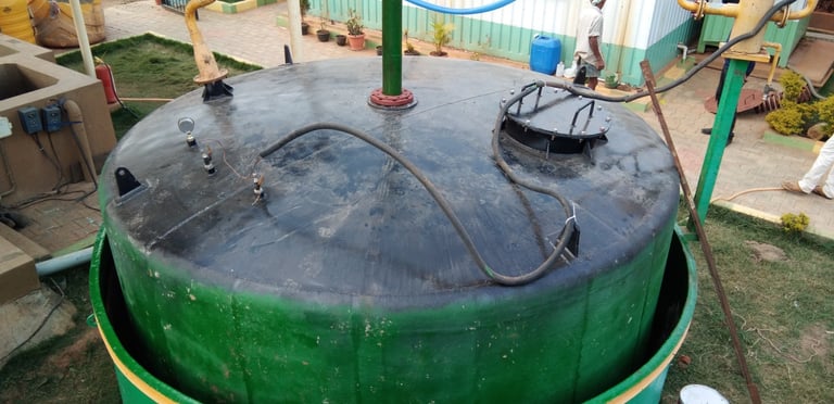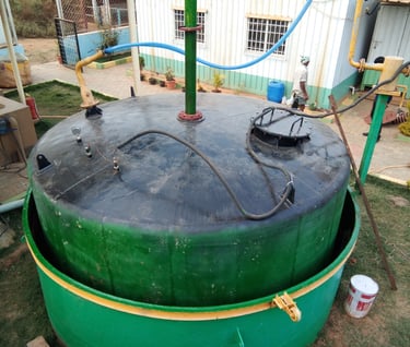 Biogas plants for cooking is one of the most common applications. The fuel from the Biogas plant burns as a clean fuel and has the ability to generate heat for cooking purposes. Every cubic meter of biogas has an average calorific value of about 20 Mega Joules. This is equivalent to the calorific value of about 0.43Kg of LPG (Liquified petroleum gas). Cooking is one of the most widely used applications of biogas. The gas leaves no residue after it burns which makes it completely usable.